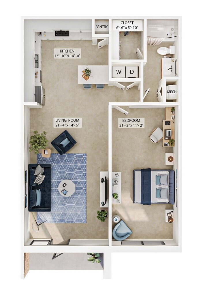 1 Bed, 1 Bath, 876 sq ftModel Gallery