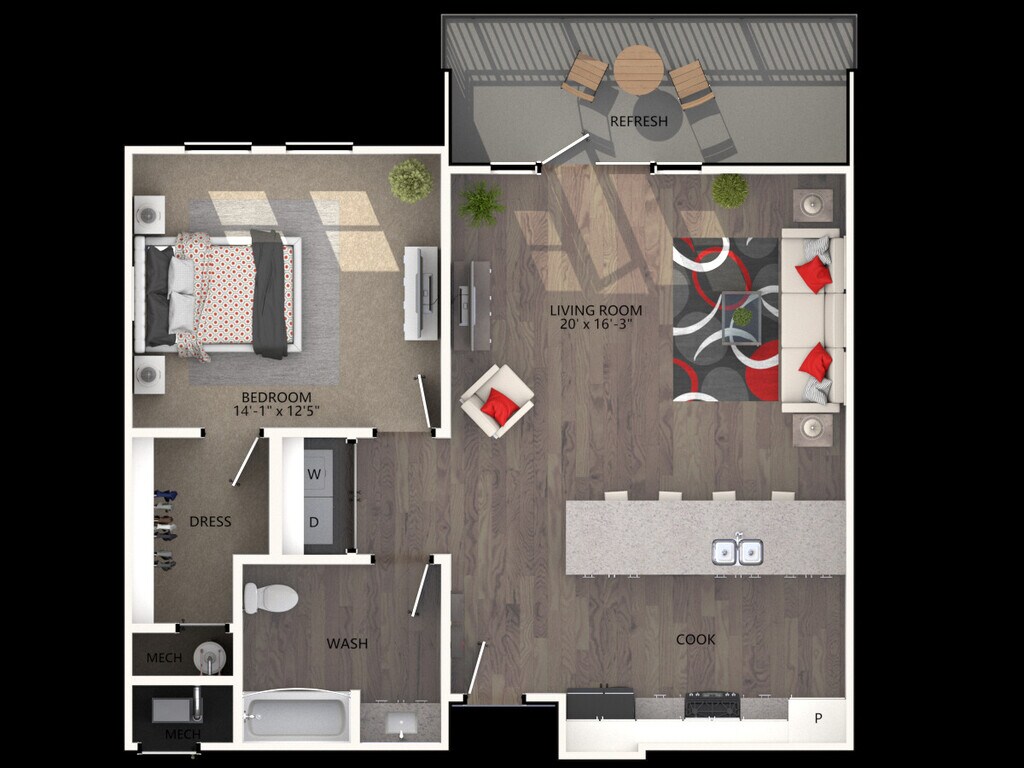 1 Bed, 1 Bath, 799 sq ftModel Gallery
