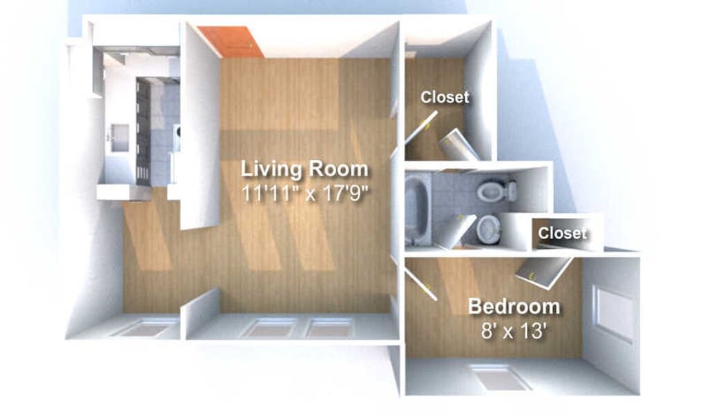 Studio, 1 Bath, 240 sq ftAvailable Aug 7Model Gallery