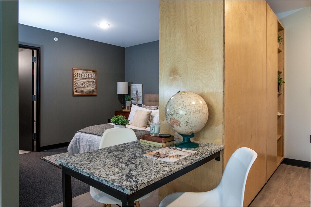 Vassar Flats is a recently-built fifty-unit apartment complex near 17th and Hillside. Unique in design, these units offer efficiency of space, convenience of location, and economical living. Bedroom is defined by a privacy wall. Amenities include washer/dryer in every unit, a common area, and FREE WiFi! Vassar Flats offers a common area perfect for meeting or studying. There is ample seating, WiFi, as well as the complex's mailbox area. - 1BR, 1BA - Refrigerator, Stove, and Microwave - Common Area - Off-Street Private Parking Lot - In-unit Washer/Dryer - Pets Okay with Approval, No Pet Rent, $250 Pet Fee - FREE WiFI! - Tenant Responsible for Electric and a $30/mo Water & Trash Fee - $375 Move-in Fee RENT AMOUNT SHOWN IS FOR MONTHLY AUTO-PAY SCHEDULE. Schedule a tour online at or give us a call at !
