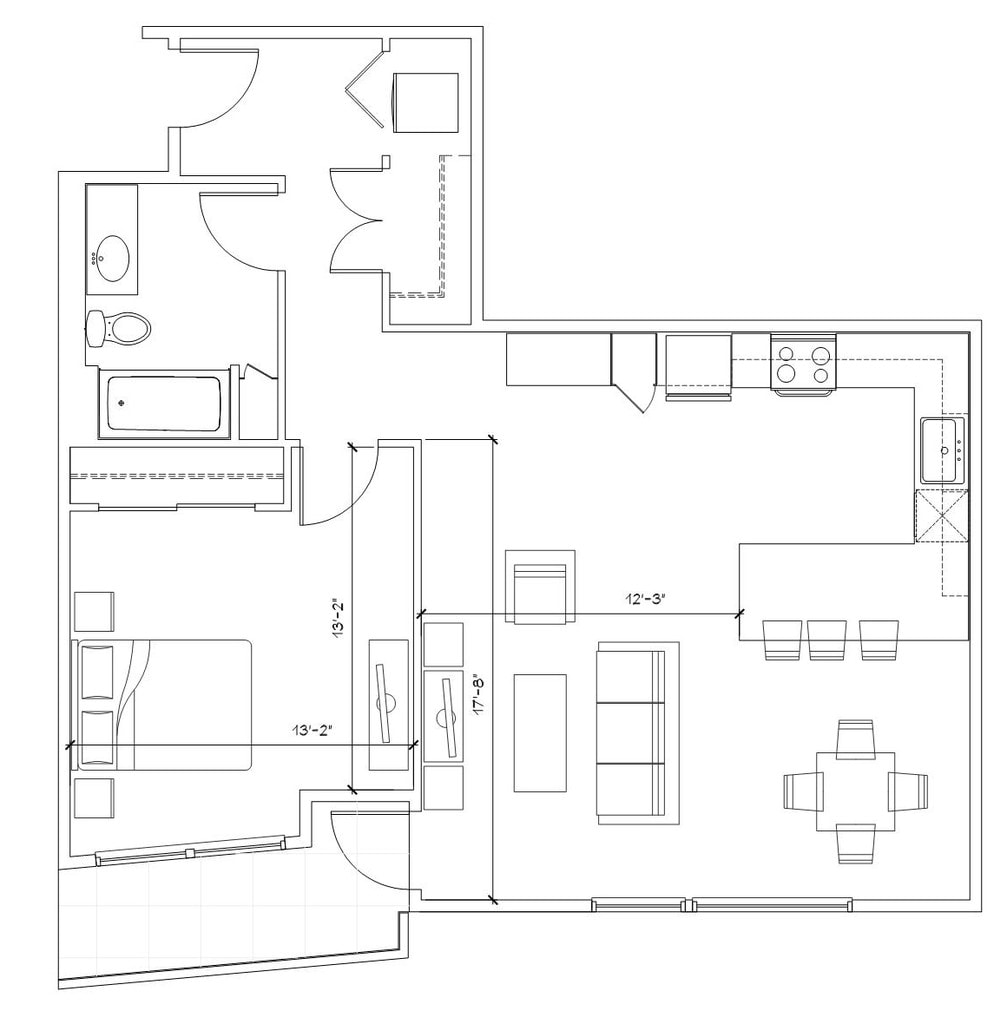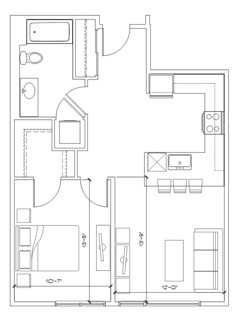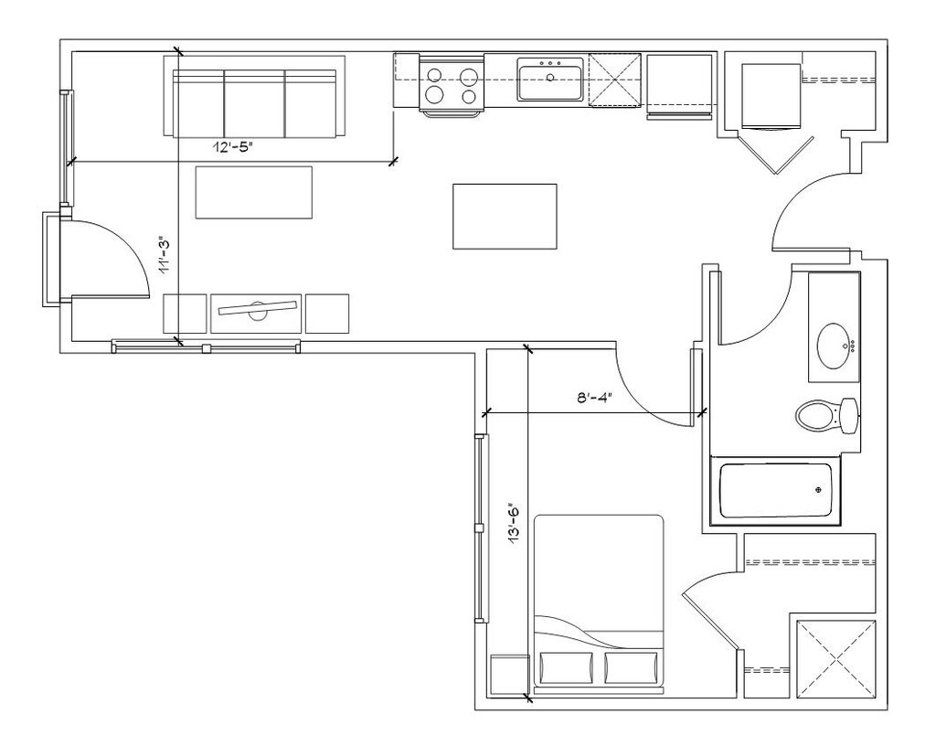 Studio / One Bath / s3 - Floorplan 1 1 Bedroom