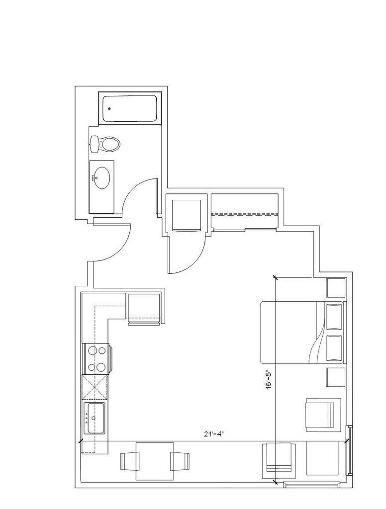 Studio, 1 Bath, 480 sq ftLargest StudioThis is the largest Studio at this PropertyModel Gallery
