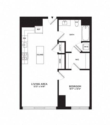 Apartment Model: 1H1 Bedroom, 1 Bath, 626 sq ftAvailable Now![]()