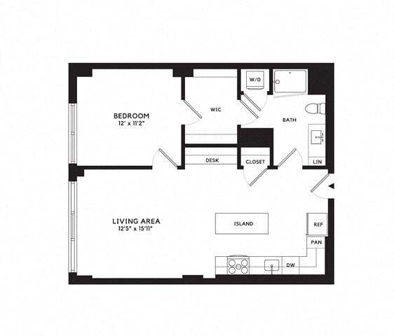 Apartment Model: Jr 1E1 Bedroom, 1 Bath, 571 sq ftAvailable February 7, 2026![]()