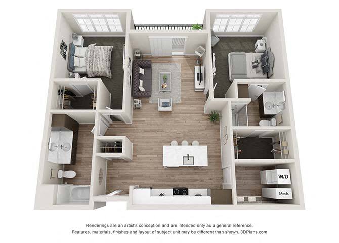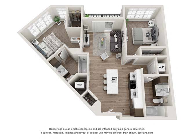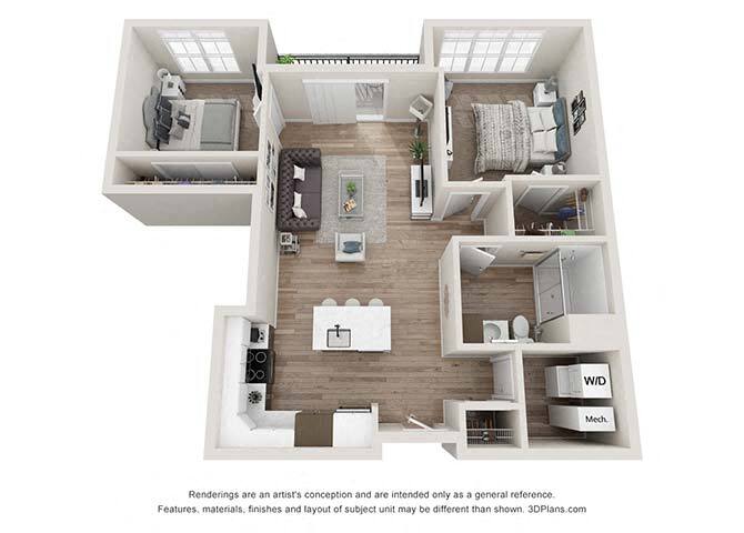 Apartment Model: A2From $1,3951 Bedroom, 1 Bath, 729 sq ftAvailable NowFloor plans are artist's rendering. All dimensions are approximate. Actual product and specifications may vary in dimension or detail. Not all features are available in every rental home. Prices and availability are subject to change. Base rent is based on monthly frequency. Additional fees may apply, such as but not limited to package delivery, trash, water, amenities, etc. Deposits vary. Please see a representative for details.