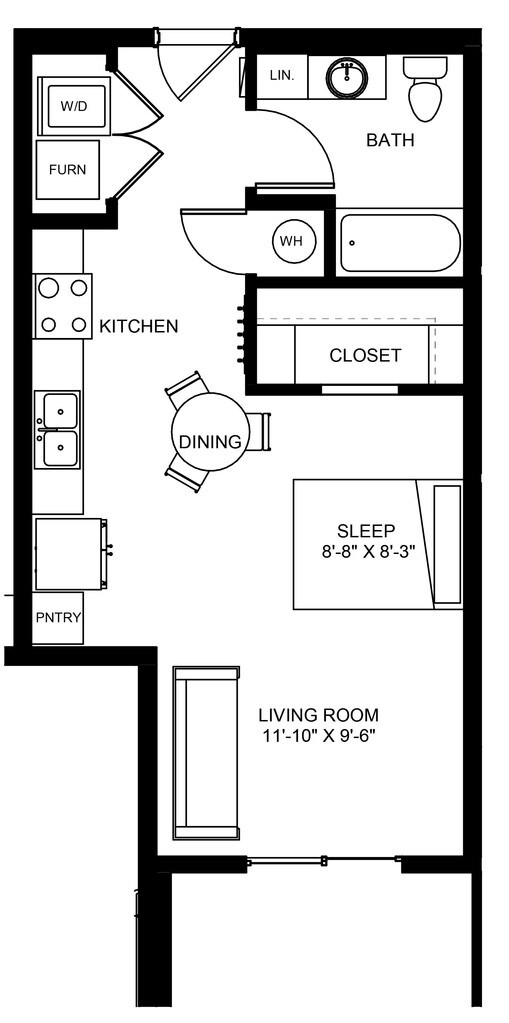 S1 - Floorplan 2 Apartment Unit: 225-404Apartment Model: S1$899Studio, 1 Bath, 483 sq ftAvailable NowFloorplan S2