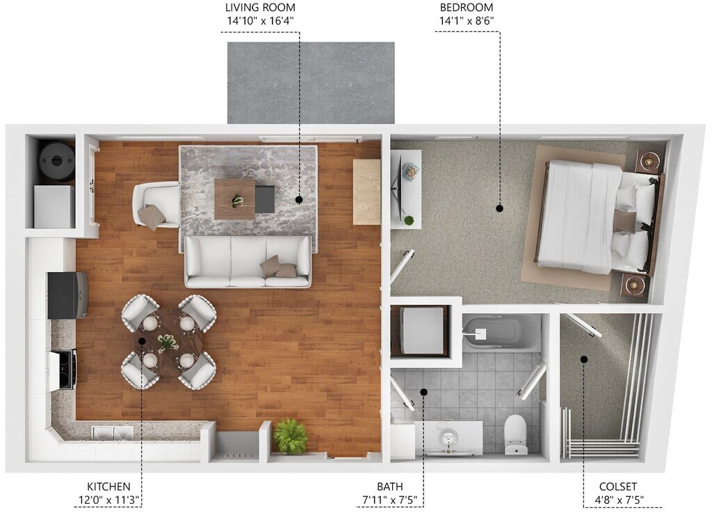Studio, 1 Bath, 509 sq ftAvailable NowModel Gallery