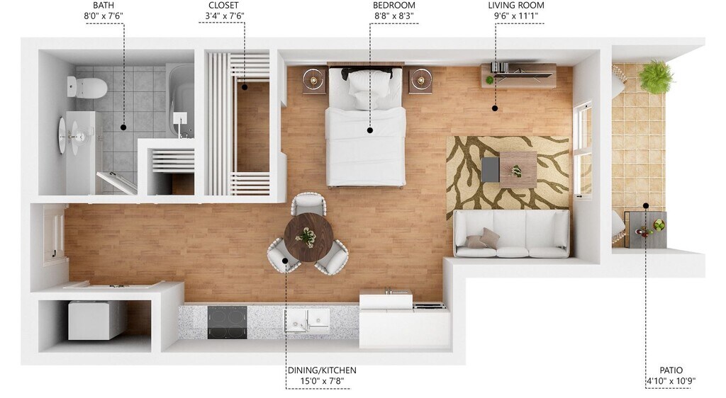 Studio, 1 Bath, 502 sq ftModel Gallery