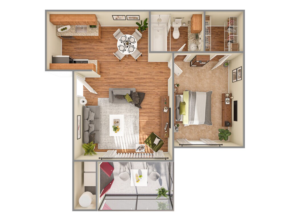 1 Bed, 1 Bath, 544 sq ftAvailable NowModel Gallery
