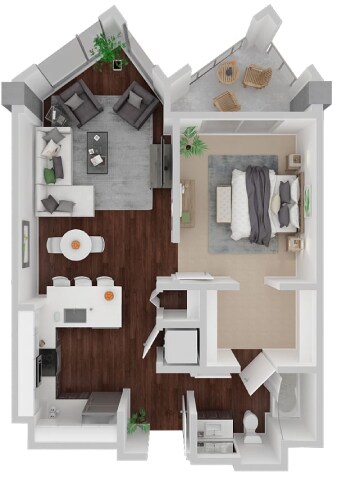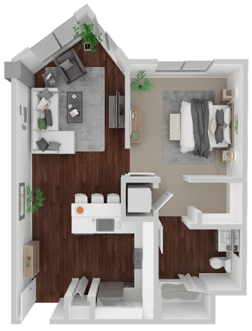 1 Bed, 1 Bath, 501 sq ftModel Gallery