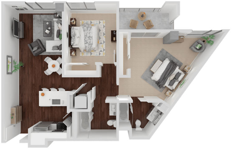 1 Bed, 1 Bath, 673 sq ftModel Gallery
