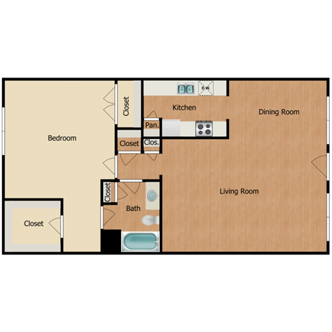 1 Bed, 1 Bath, 640 sq ftModel Gallery