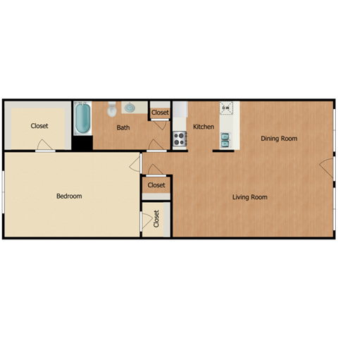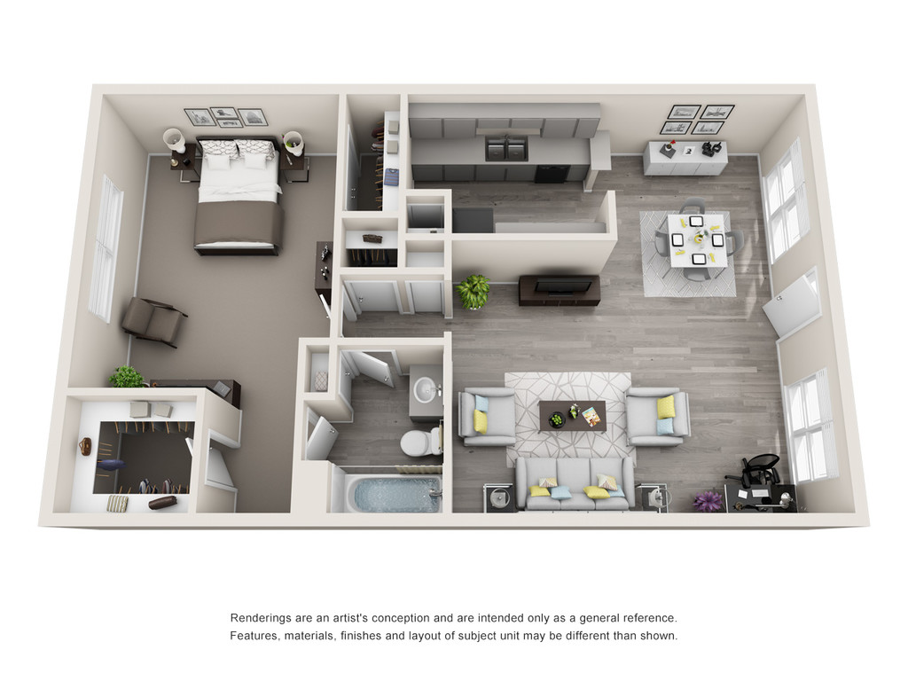 1 Bed, 1 Bath, 544 sq ftModel Gallery