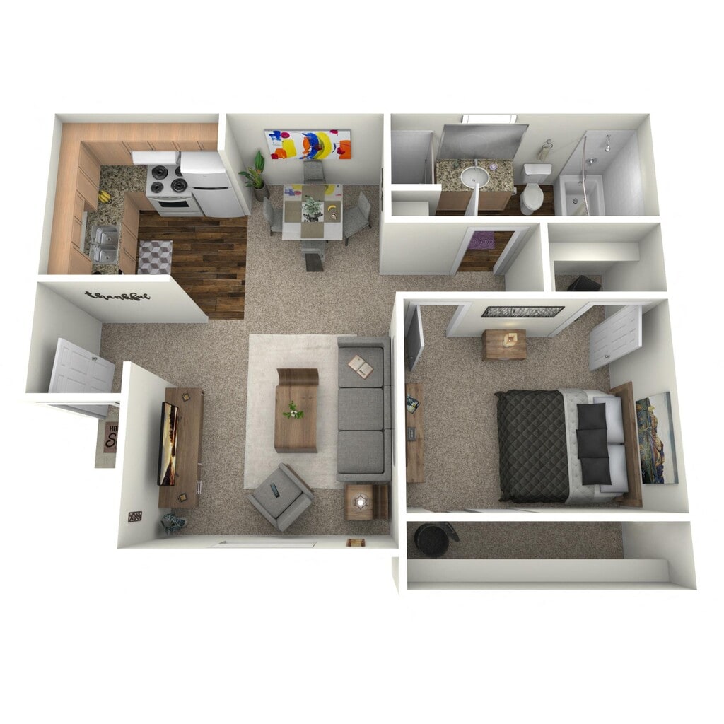 2 Beds, 1 Bath, 670 sq ftModel Gallery