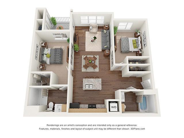 Apartment Model: Two Bedroom (B2)From $1,4072 Bedroom, 2 Bath, 1081 sq ftAvailable January 1, 2026![]()