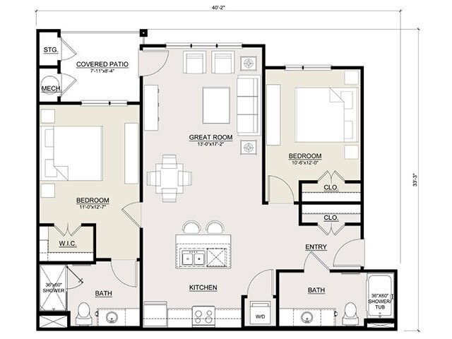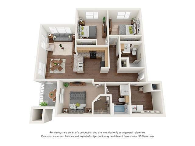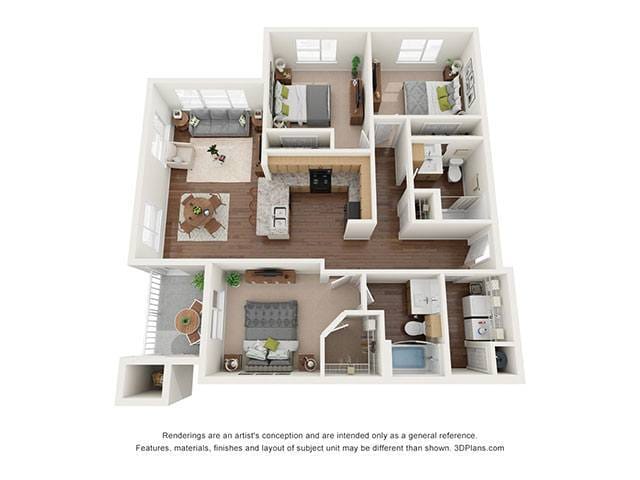 Apartment Model: Two Bedroom (B1)From $1,3632 Bedroom, 2 Bath, 1067 sq ftAvailable Now![]()