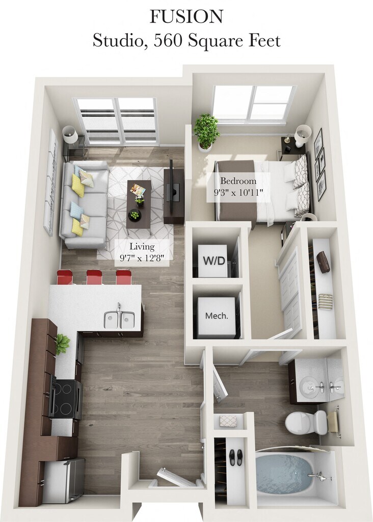 Apartment Model: Fusion StudioStudio, 1 Bath, 560 sq ftAvailable February 6, 2026![]()