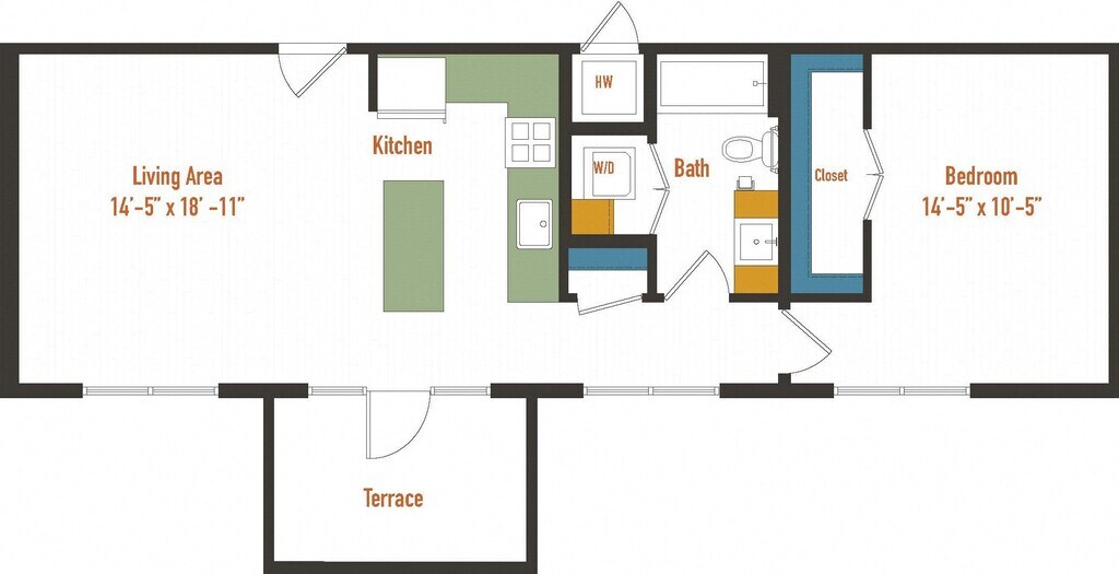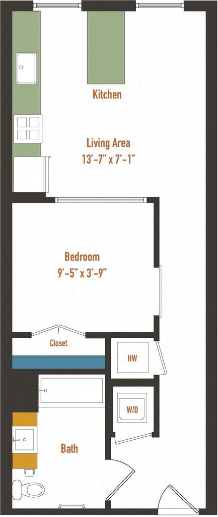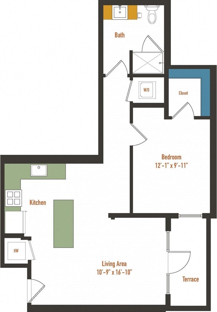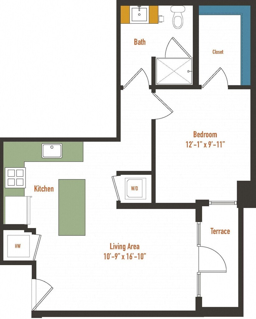 JR 1A - Floorplan 1 Apartment Unit: 419Apartment Model: JR 1A$1,9751 Bedroom, 1 Bath, 563 sq ftAvailable Now![]()
