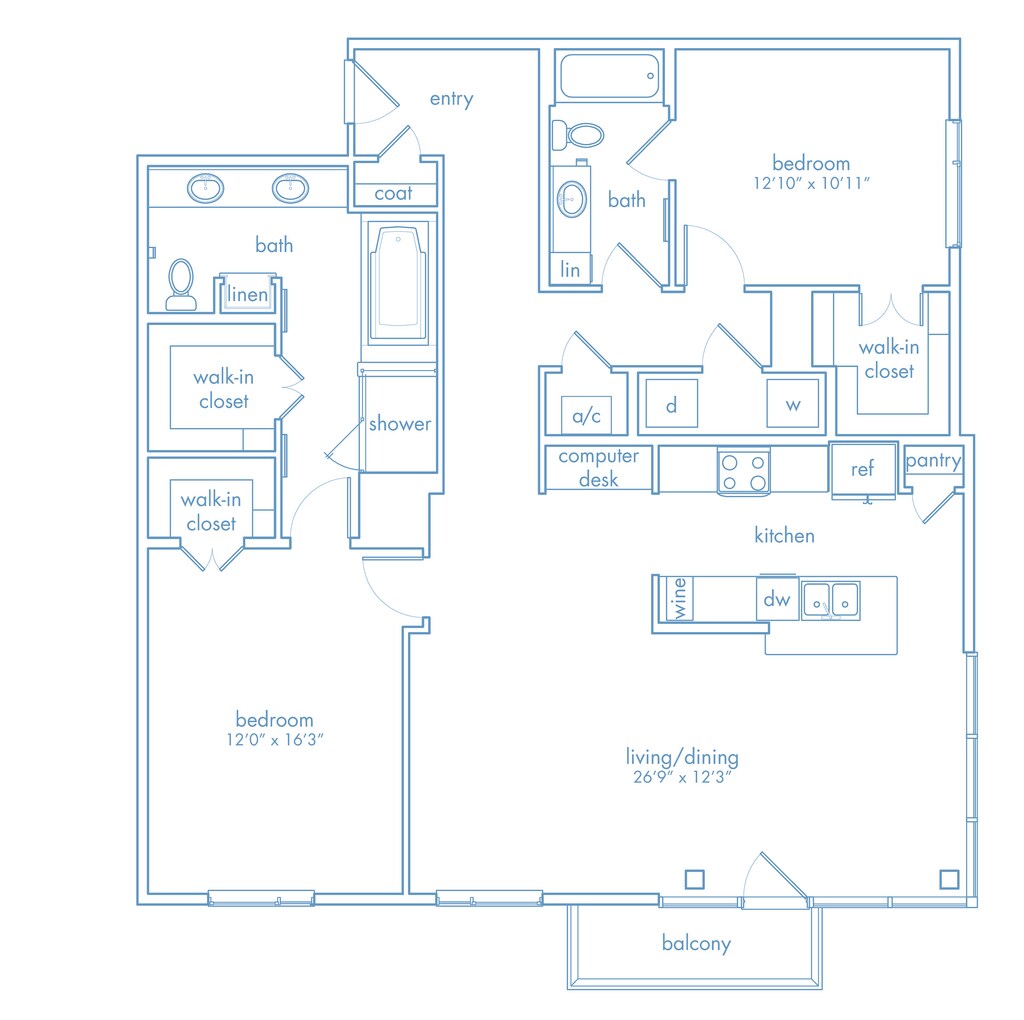 Apartment Model: Dali One2 Bedroom, 2 Bath, 1435 sq ftAvailable Now![]()