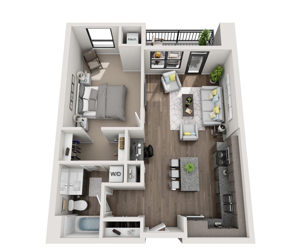 1 Bed, 1 Bath, 711 sq ftModel Gallery