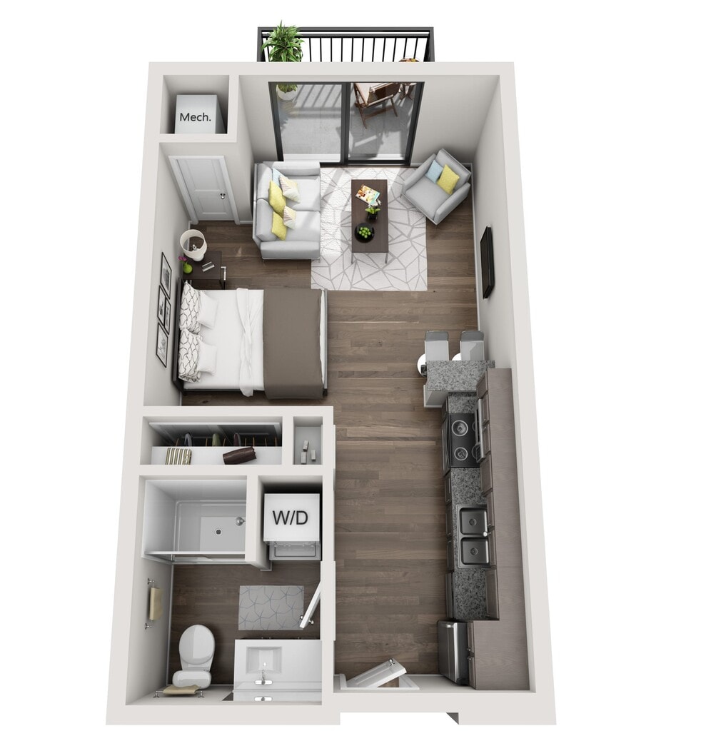 Studio, 1 Bath, 447 sq ftTotal Monthly PriceAvailable NowModel Gallery