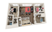 Apartment Model: B3$1,2802 Bedroom, 2 Bath, 1038 sq ftAvailable August 19, 2026B3 - Floorplan 1 Apartment Unit: PrivateApartment Model: B3$1,2802 Bedroom, 2 Bath, 1038 sq ftAvailable August 19, 2026Floorplan B2