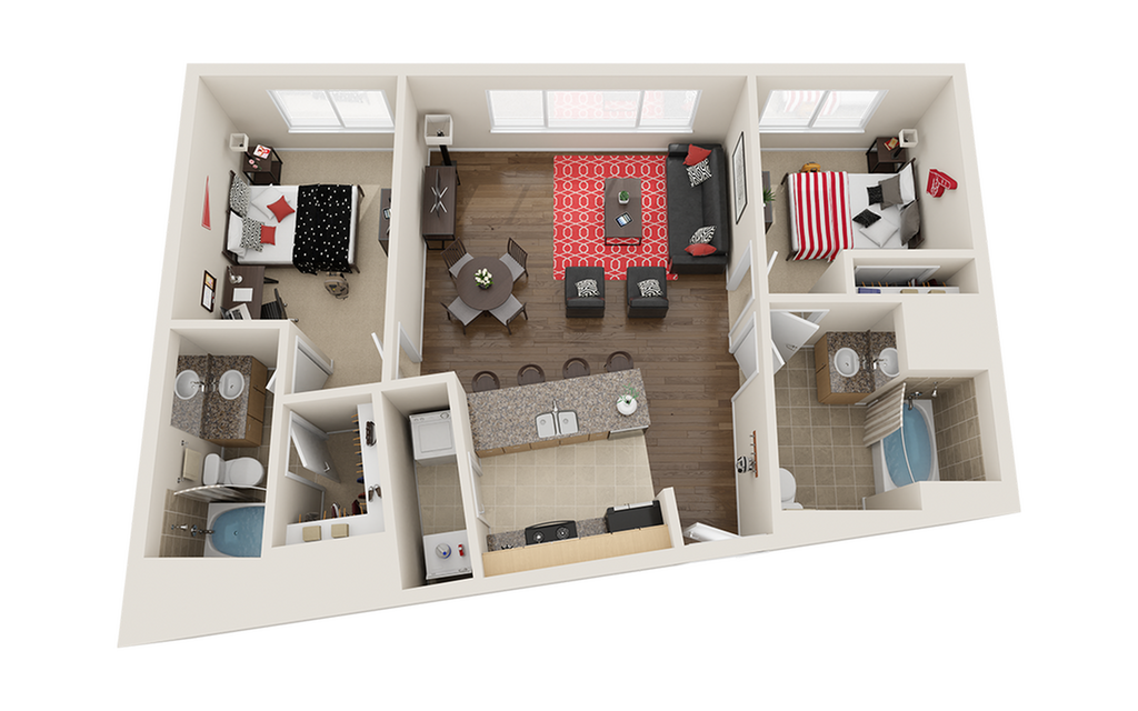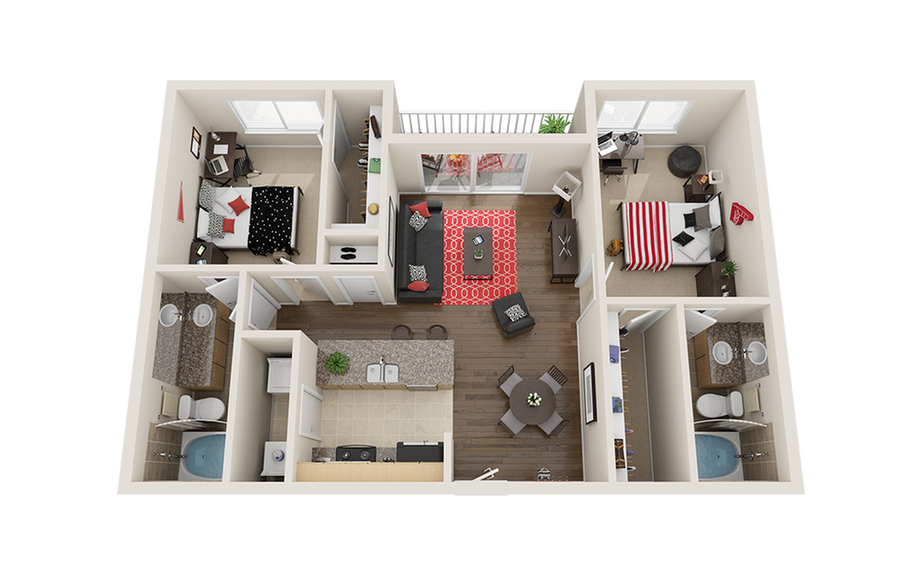2 Beds, 2 Baths, 1034 sq ftAvailable August 19, 2026Model Gallery