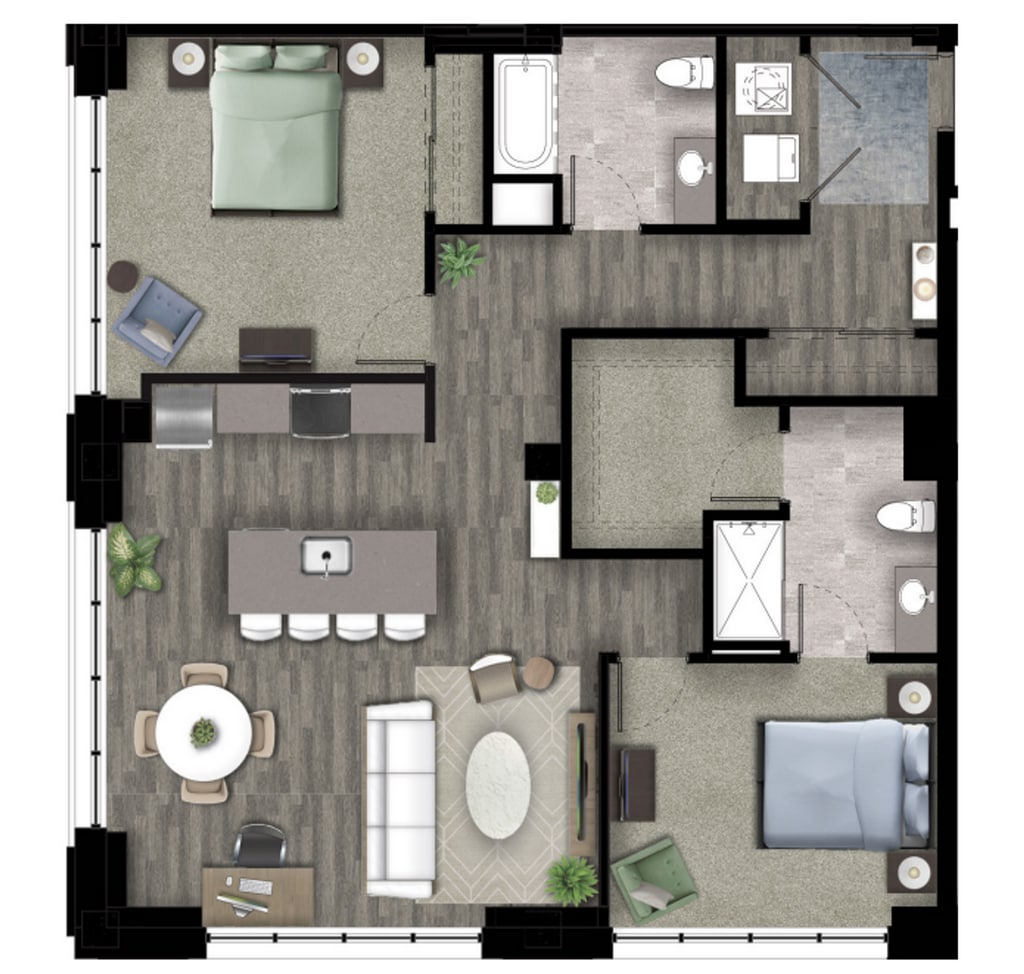2Bedroom/2Bath - 2A - Floorplan 11 Apartment Unit: 200Apartment Model: 2Bedroom/2Bath - 2A$2,2602 Bedroom, 2 Bath, 1266 sq ftAvailable Now