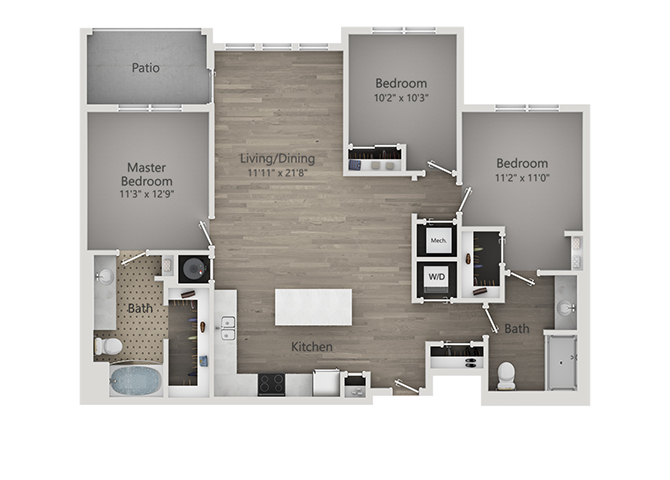 2 Beds, 2 Baths, 1101 sq ftModel Gallery