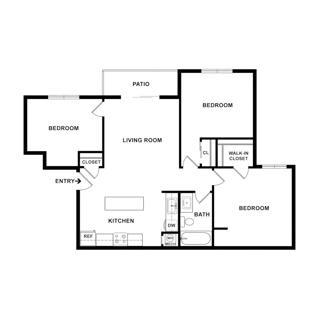 3 Bedroom One Bathroom Reno - Floorplan 6 Apartment Unit: 11Apartment Model: 3 Bedroom One Bathroom Reno$1,3993 Bedroom, 1 Bath, 900 sq ftAvailable January 16, 2026