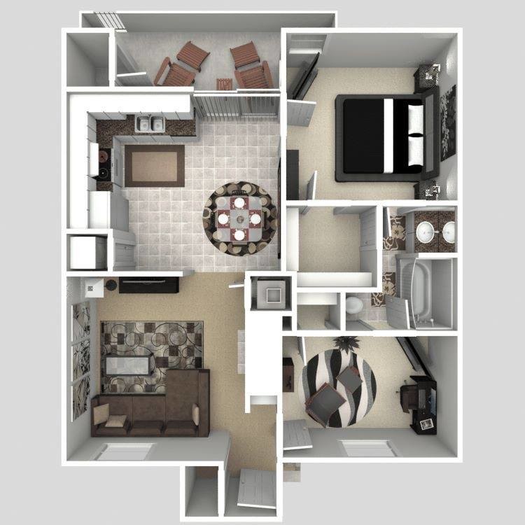 2 Beds, 1 Bath, 748 sq ftModel Gallery