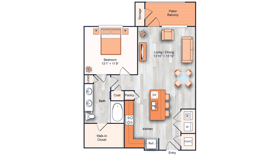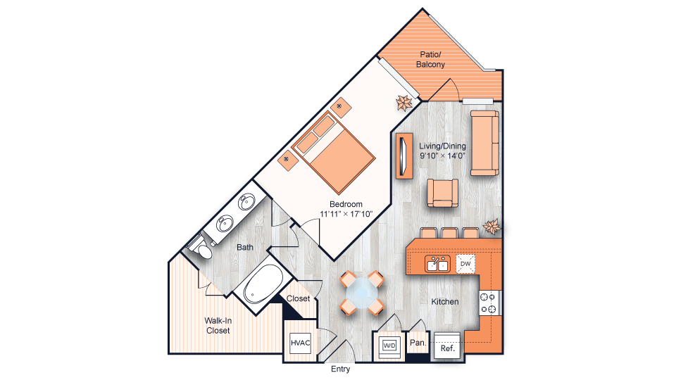 Apartment Model: A1From $1,4341 Bedroom, 1 Bath, 814 sq ftAvailable Now![]()