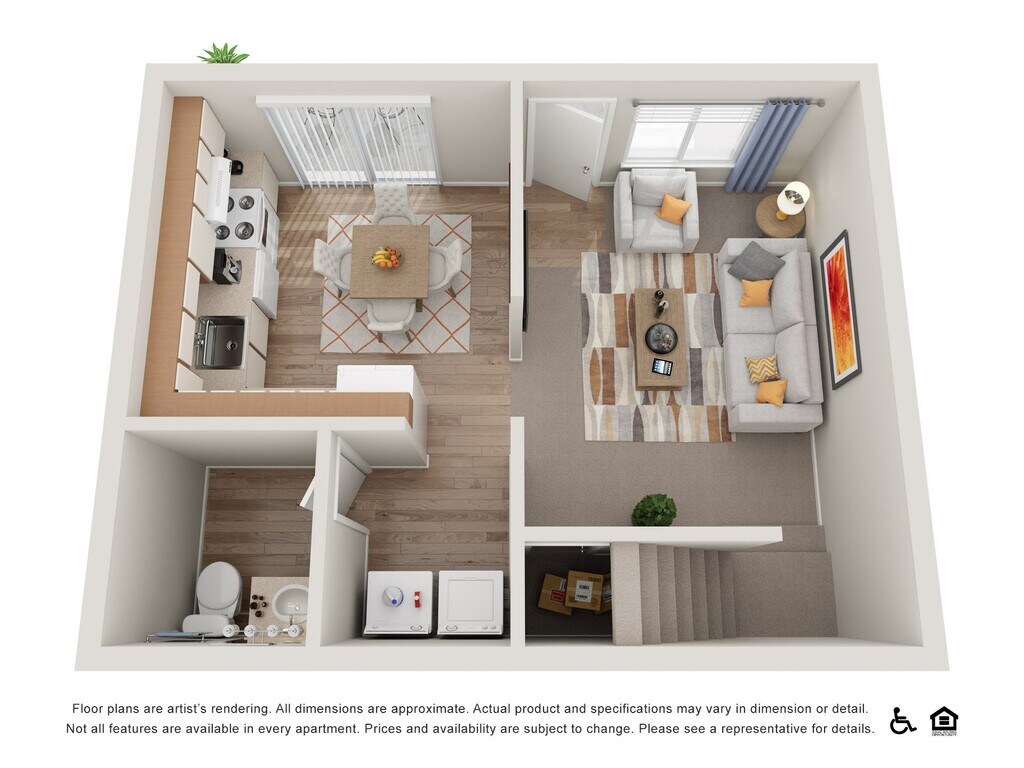 Apartment Model: Two Bedroom TownhomeFrom $1,9452 Bedroom, 1.5 Bath, 915 sq ftAvailable NowFloor plans are artist's rendering. All dimensions are approximate. Actual product and specifications may vary in dimension or detail. Not all features are available in every rental home. Prices and availability are subject to change. Base rent is based on monthly frequency. Additional fees may apply, such as but not limited to package delivery, trash, water, amenities, etc. Deposits vary. Please see a representative for details.