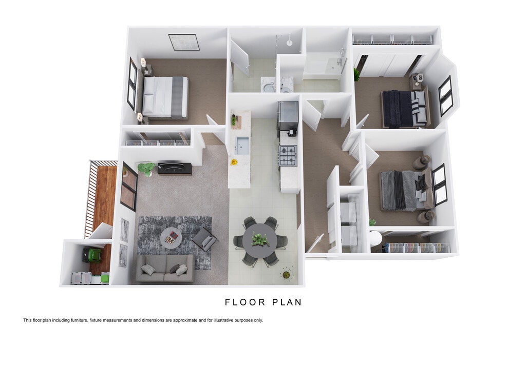 Apartment Model: 3 BR 2 bathFrom $1,8953 Bedroom, 2 Bath, 1060 sq ftAvailable Now![]()