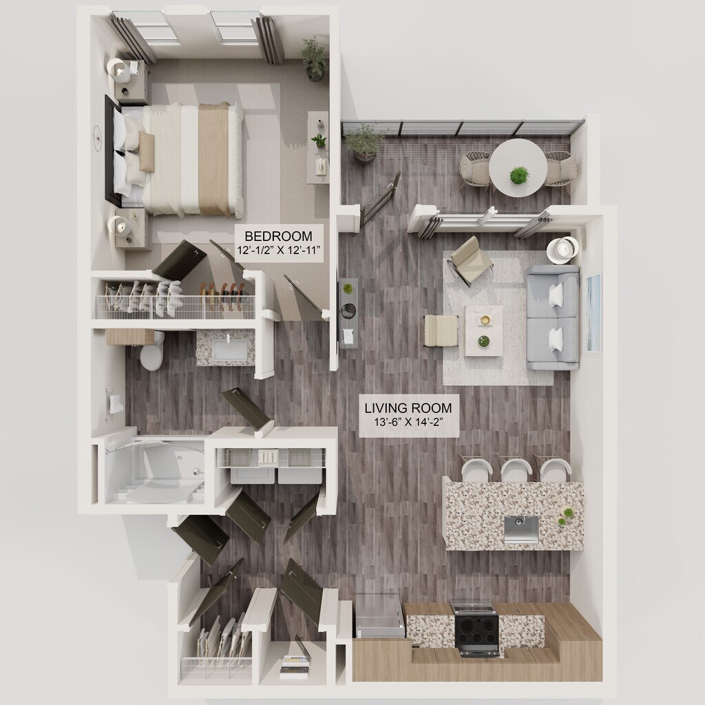 1 Bed, 1 Bath, 689 sq ftAvailable NowModel Gallery