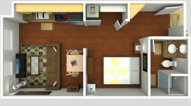 Studio - 439 sqft - Floorplan 2 1 Bedroom