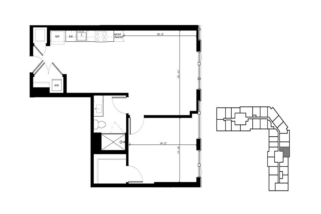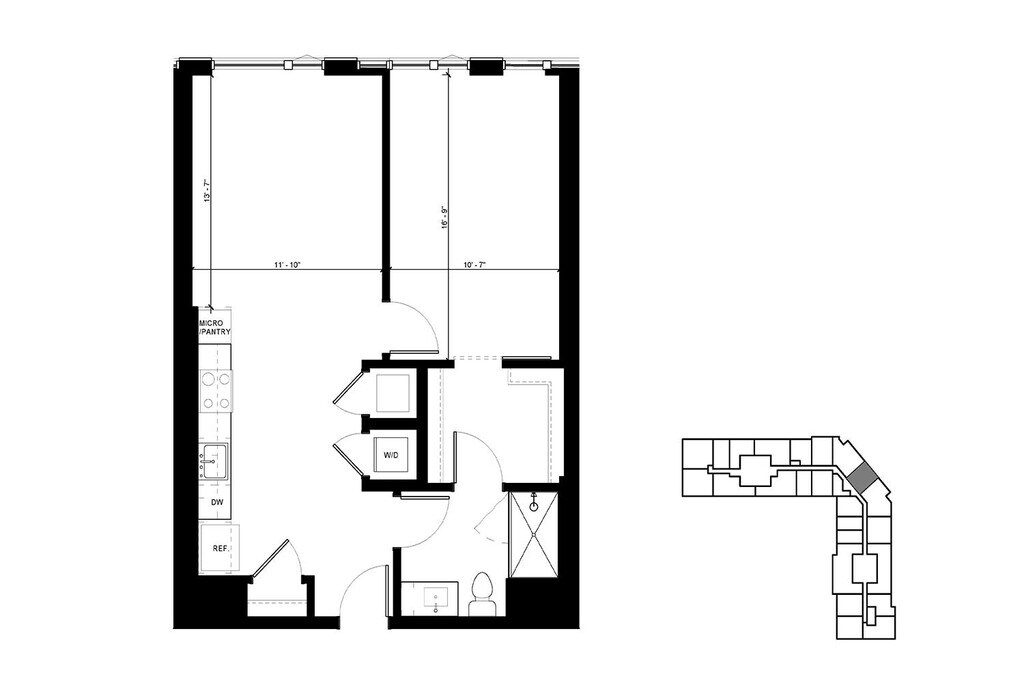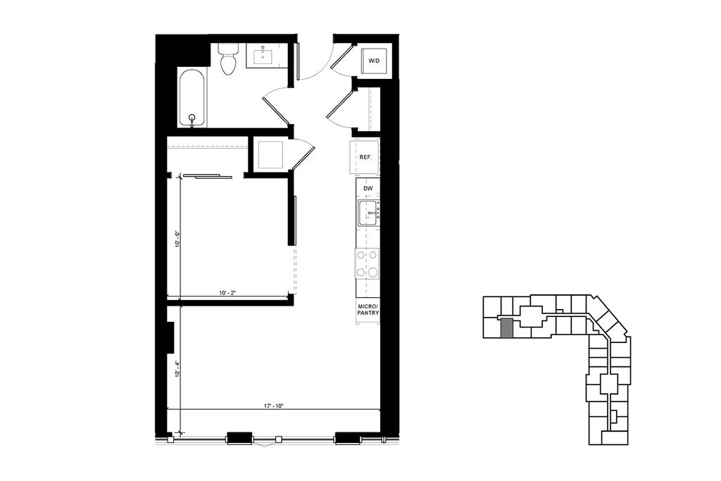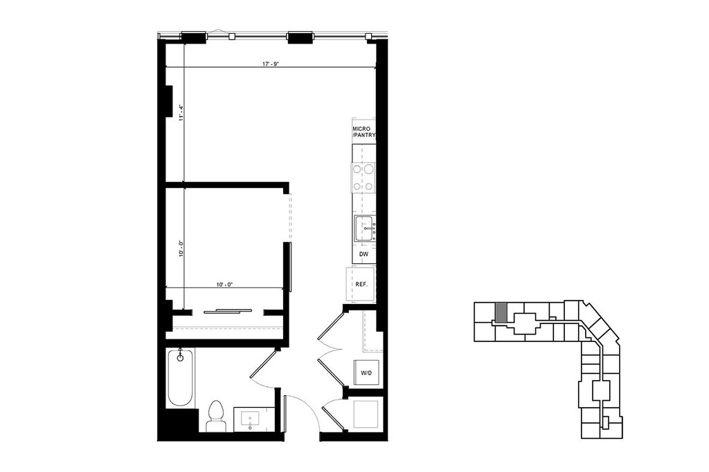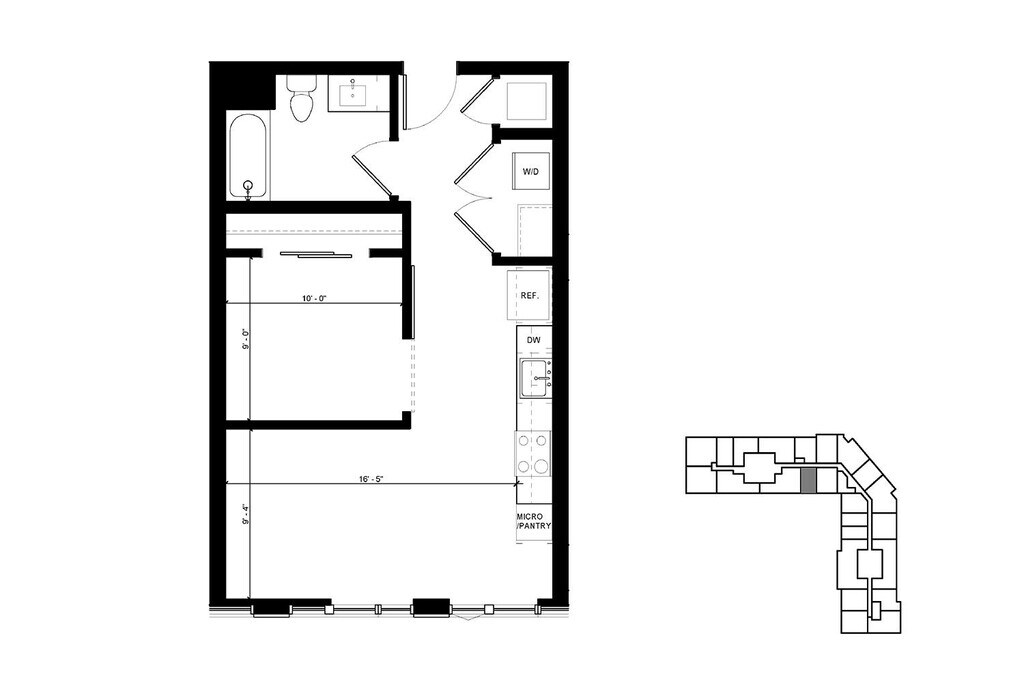 S1 Studio - Floorplan 1 Apartment Unit: 1011Apartment Model: S1 Studio$2,497Studio, 1 Bath, 487 sq ftAvailable Now![]()