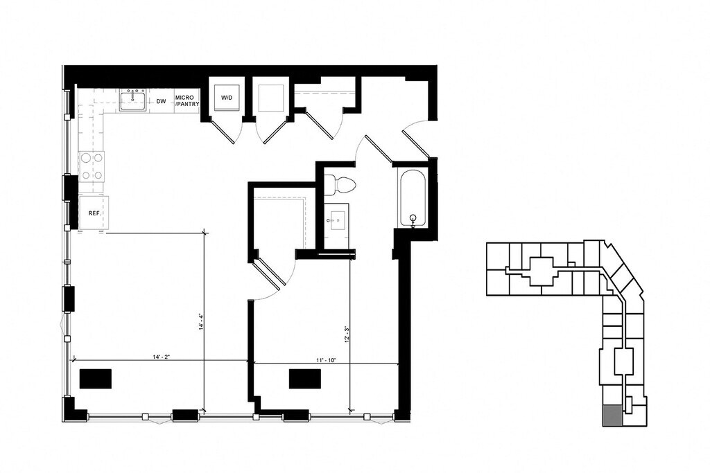 A4 1 Bedroom - Floorplan 1 Apartment Unit: 1020Apartment Model: A4 1 Bedroom$2,7141 Bedroom, 1 Bath, 697 sq ftAvailable Now![]()