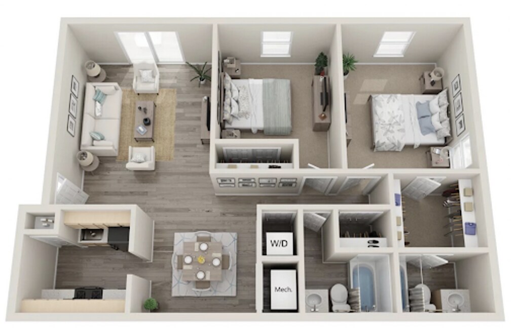 2 Beds, 2 Baths, 1025 sq ftAvailable NowModel Gallery