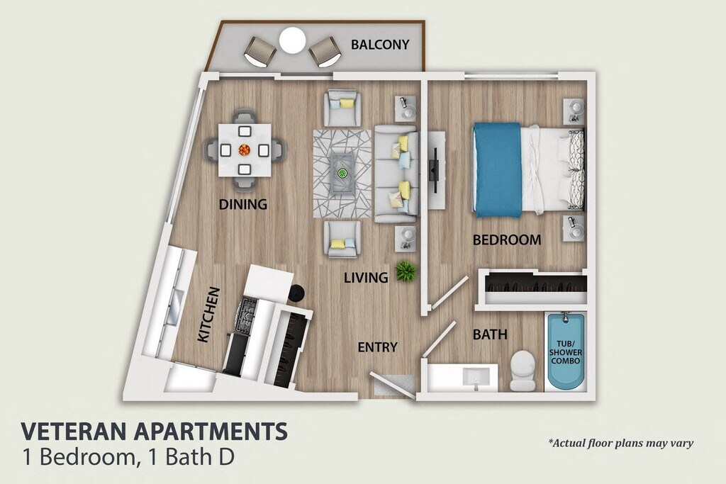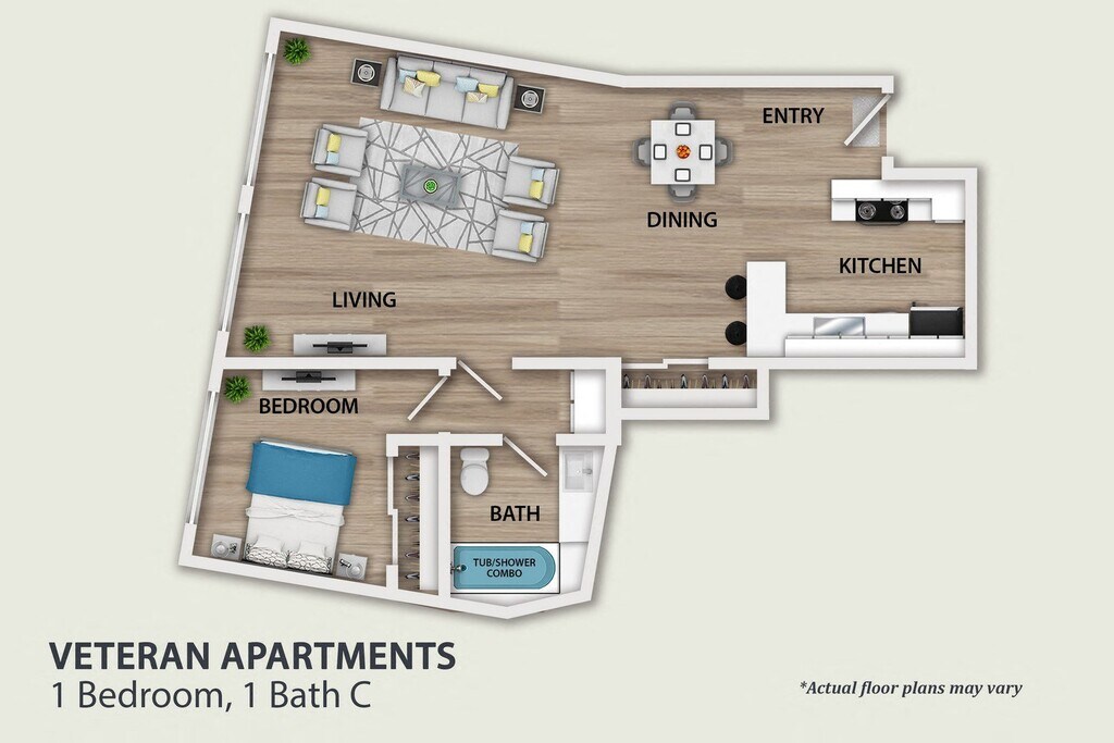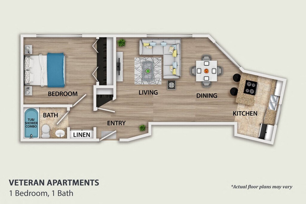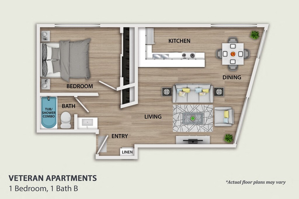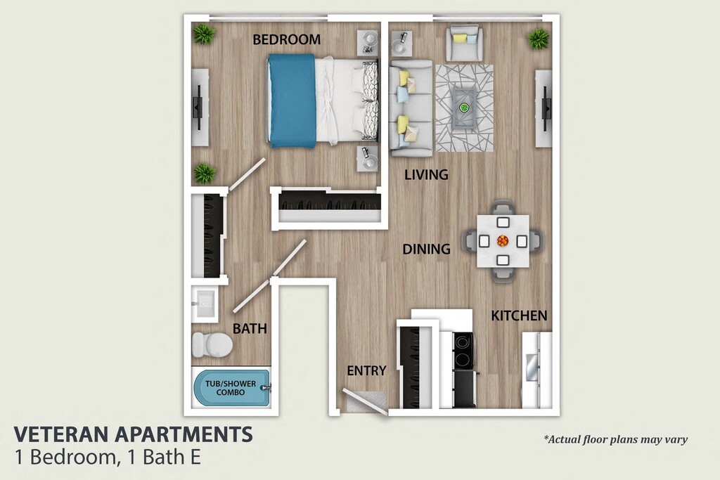 1 Bedroom, 1 Bath - Floorplan 5 Apartment Unit: 202Apartment Model: 1 Bedroom, 1 Bath1 Bedroom, 1 Bath, 650 sq ftAvailable Now![]()