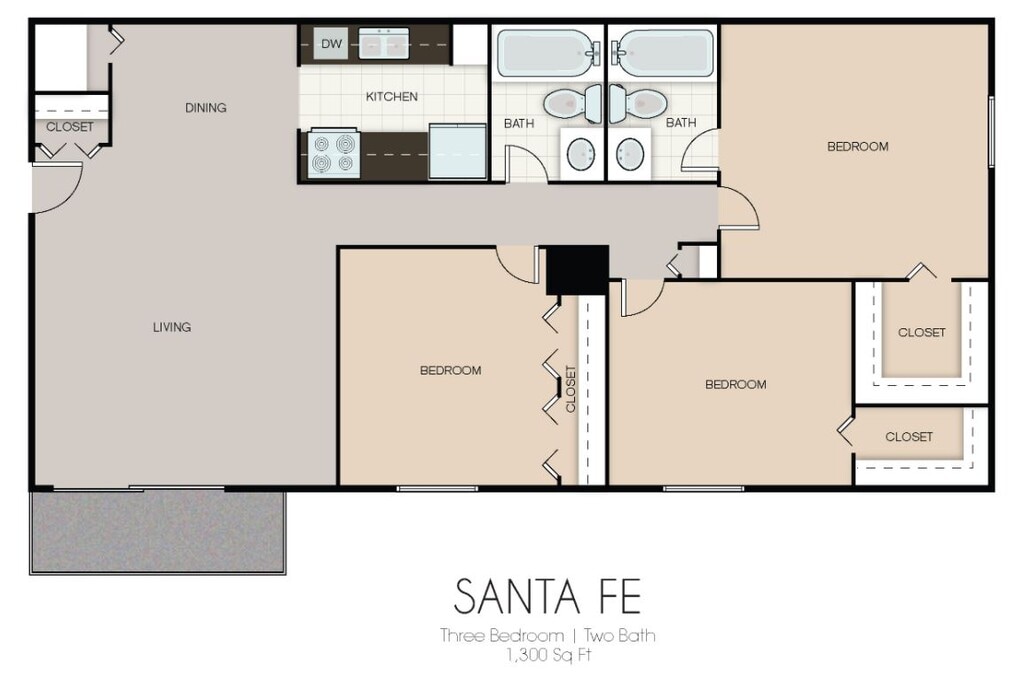 3 Beds, 2 Baths, 1300 sq ftAvailable NowModel Gallery