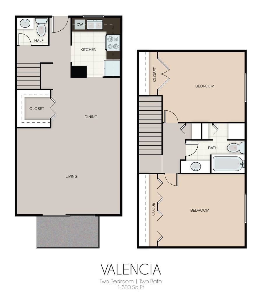 2 Beds, 1.5 Baths, 1300 sq ftModel Gallery