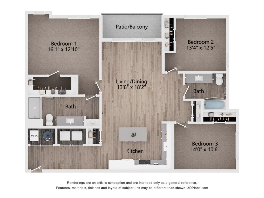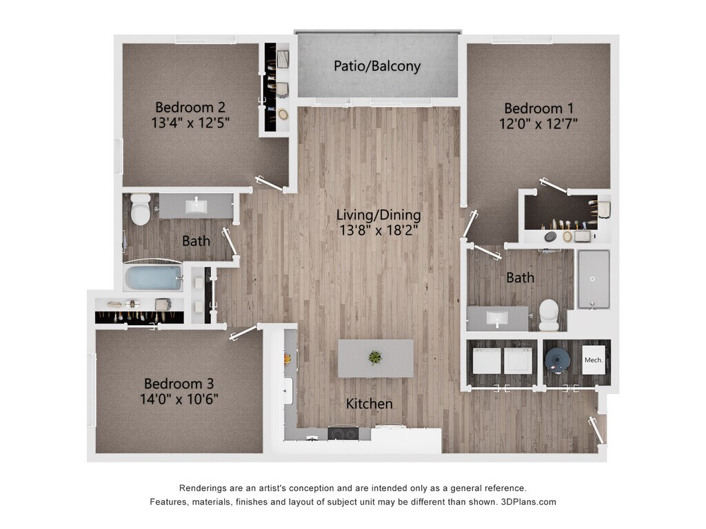 Apartment Model: 3A Three Bedroom$1,8223 Bedroom, 2 Bath, 1248 sq ftAvailable November 17, 2025![]()