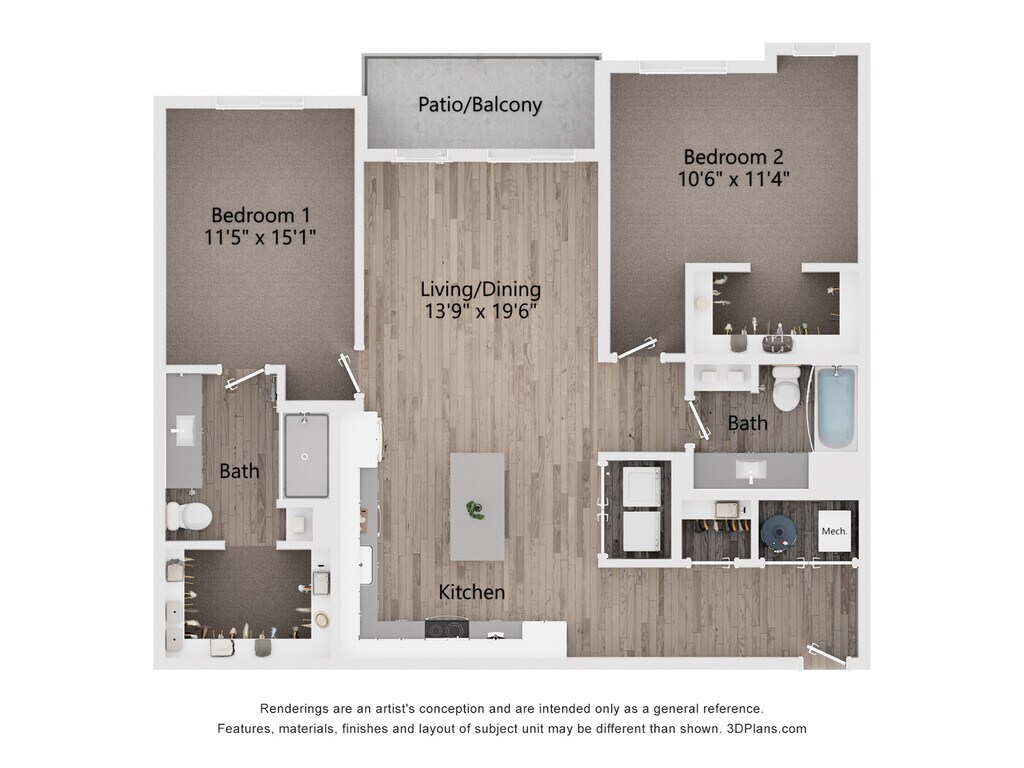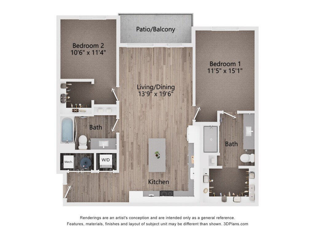 2 Beds, 2 Baths, 1061 sq ftModel Gallery