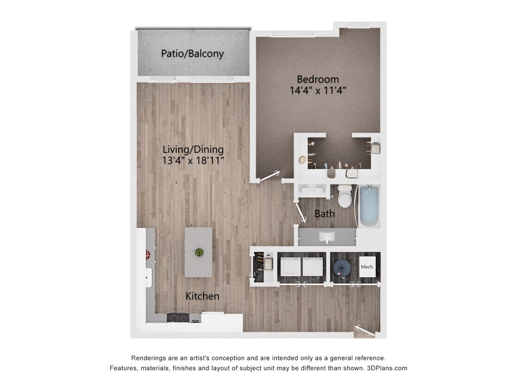 Apartment Model: 1A One Bedroom$1,2231 Bedroom, 1 Bath, 695 sq ftAvailable December 15, 2025![]()