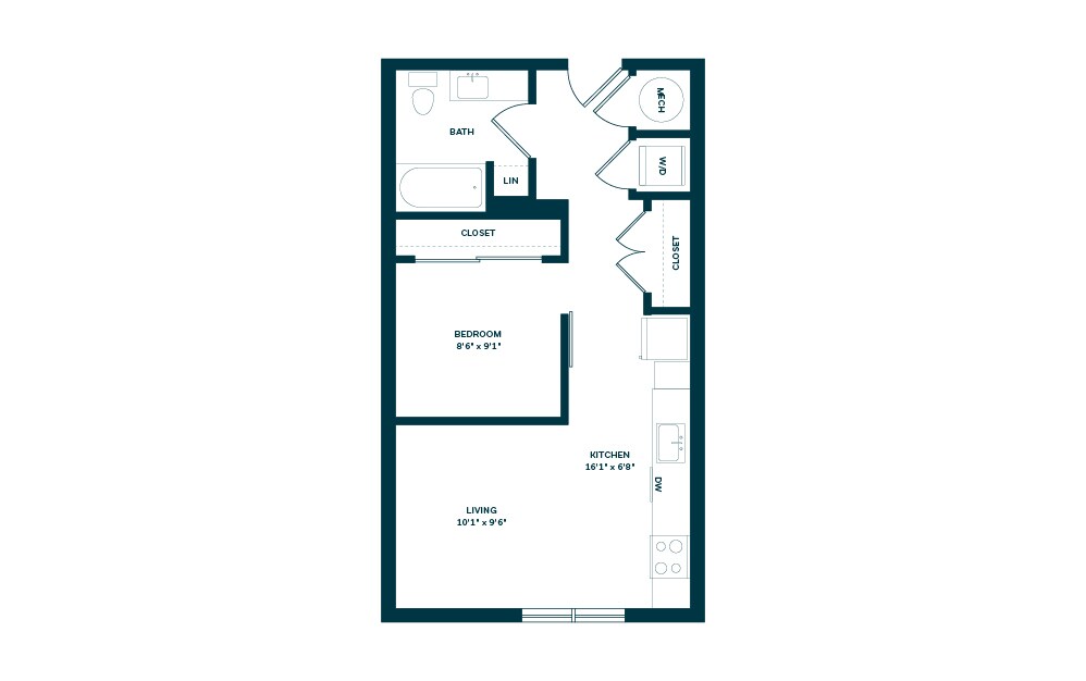 Studio, 1 Bath, 612 sq ftAvailable NowModel Gallery