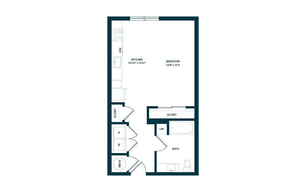 Studio, 1 Bath, 647 sq ftAvailable NowLargest StudioThis is the largest Studio at this PropertyModel Gallery