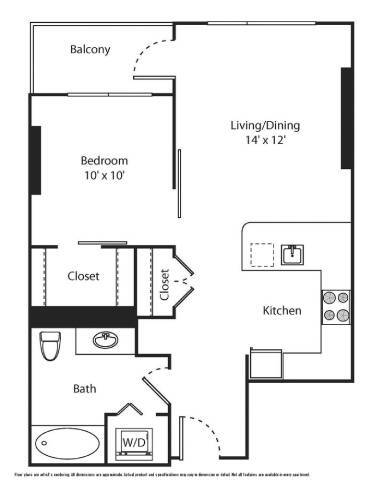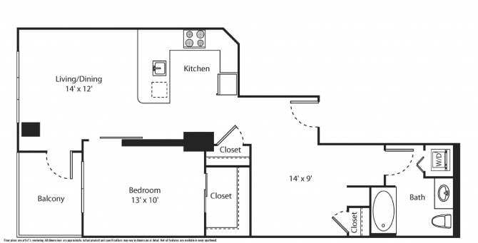 Studio, 1 Bath, 555 sq ftAvailability Details