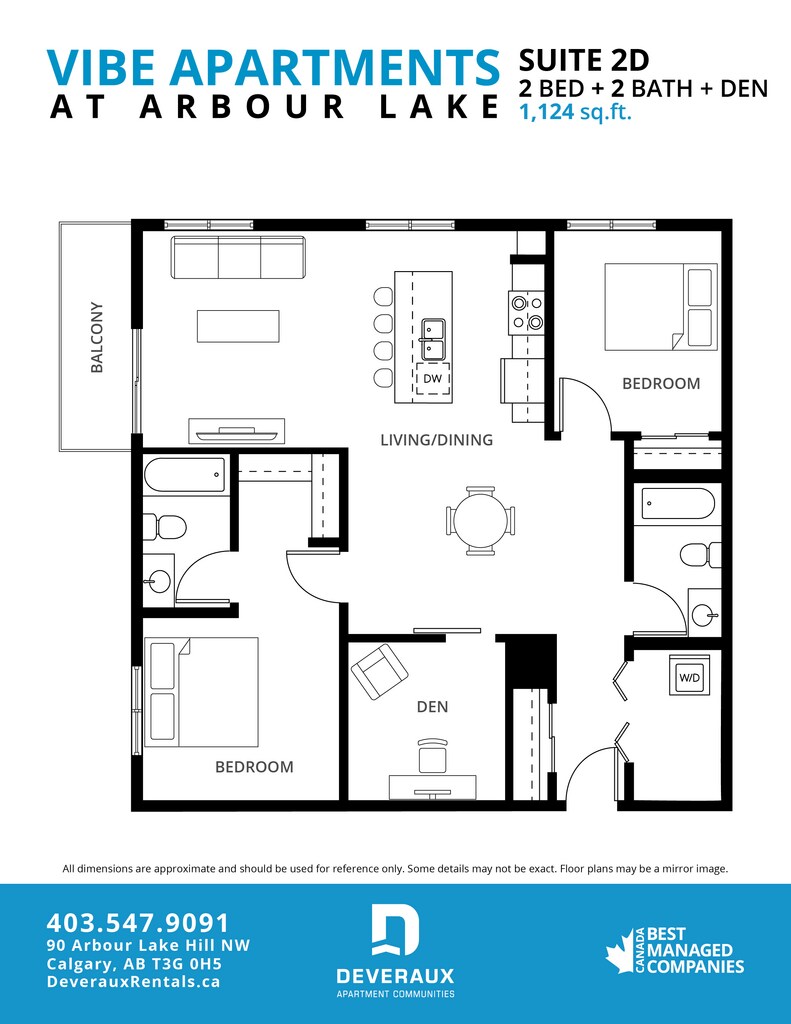 Welcome to Vibe Apartments at Arbour Lake, where modern luxury meets mountain views. Our luxury apartments in Calgary offer one-, two-, and three-bedroom suites ranging from 556 to 1,246 square feet, each with quartz countertops, in-suite laundry, and high-gloss cabinetry. The floor plans include options with dens, ensuite bathrooms, and private balconies for that perfect blend of form and function. Just steps from Crowfoot Crossing and minutes from the Crowfoot LRT, youre connected to Calgarys best without sacrificing comfort.In your downtime, take advantage of the commercial-grade fitness centre, swim laps in the outdoor pool, or sip your morning latte from the on-site Starbucks machine. Its time to make Vibe your next home, so get in touch to book a tour today! *Select suites only. INQUIRE TODAY!