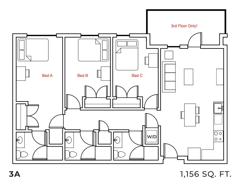 Apartment Model: 3A3 Bedroom, 3 Bath, 1156 sq ftUnavailable![]()